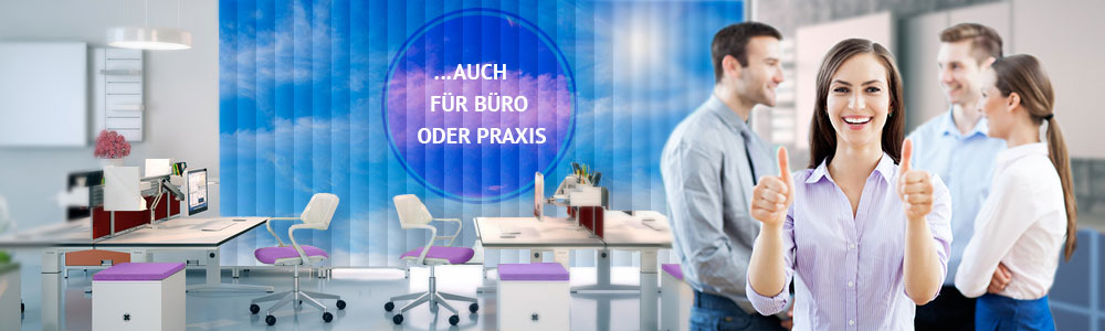 Mit unseren bedruckten Lamellen, Fotorollos und Fotovorhängen lassen sich die verschiedensten Ideen verwirklichen und Räume toll gestalten. Mit wenig Aufwand können Sie optische Eindrücke schaffen und Räume damit erheblich verändern. Probieren Sie es einmal aus,
