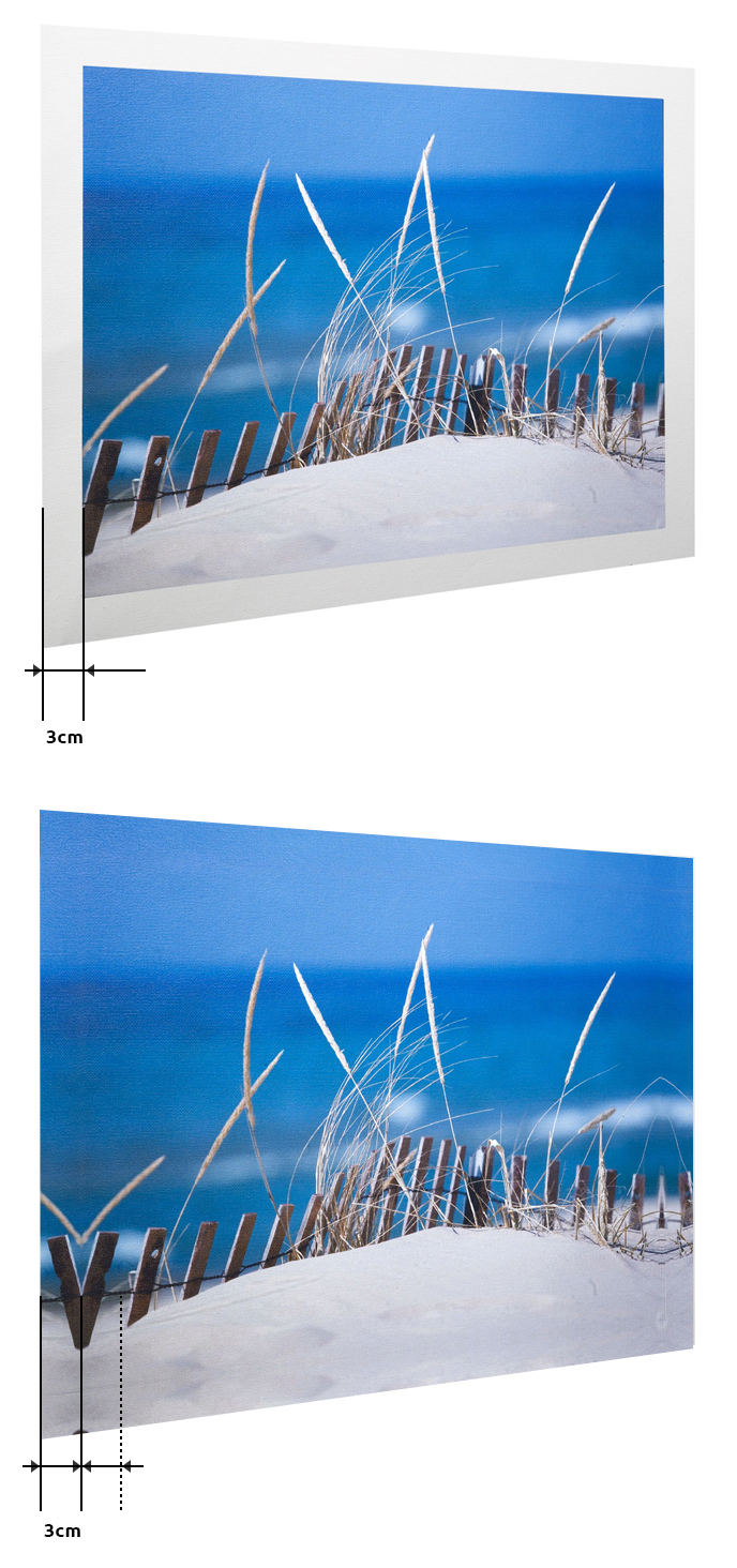 Wählen Sie hier, ob der zusätzliche Rand von +3 cm auf jeder Seite nur in weiß