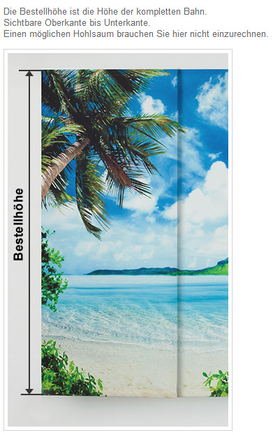 Achtung: Ein Hohlsaum ändert nichts an der Bestellhöhe. Soll Dein Produkt bspw. 150 cm hoch sein und einen 30 mm Hohlsaum erhalten, so bleibt die Bestellhöhe bei 150 cm.