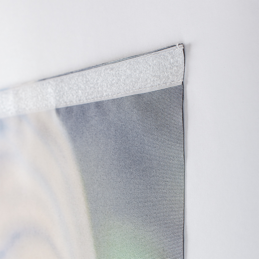Die Stoffe werden von uns oben mit Flauschband (für die Klettleiste) und unten
