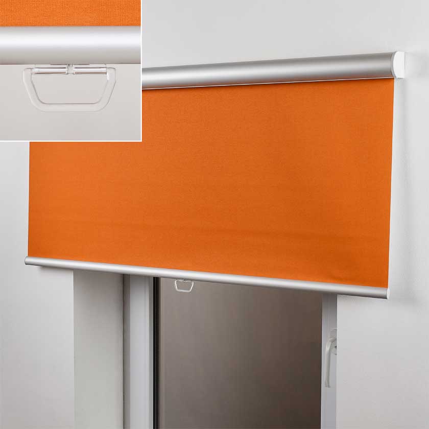 Bis zu einer Fläche von 5 qm ist das bedruckte Kassettenrollo auch als sogenanntes Springrollo oder auch Schnapprollo lieferbar, also mit einer Mittelzug-Bedienung (Federzug) statt seitliche Perlenkette.