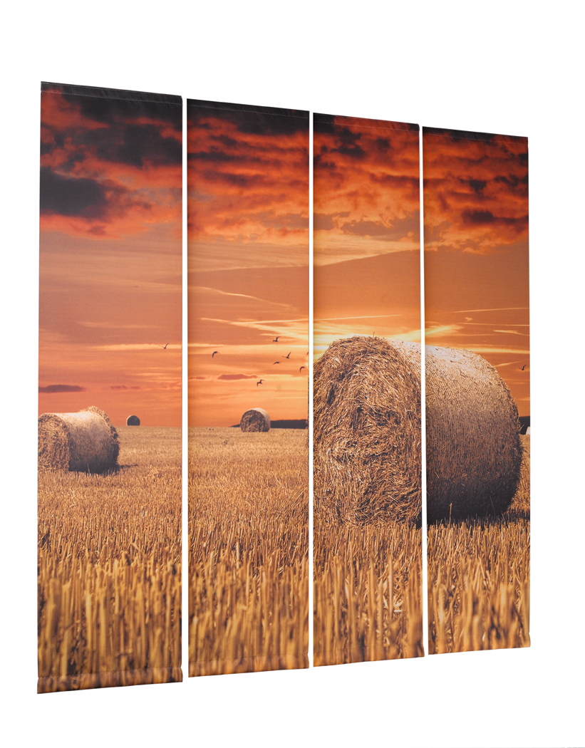 Sie können den Behang als Einzelpaneel oder mit einem Bild verteilt über mehrere Paneele bestellen und als Austauschbehang für Ihr vorhandenes Schiebegardinensystem verwenden. Auch andere Anwendungs- und Befestigungsmöglichkeiten sind denkbar für diese Foto-Paneele. Es stehen verschiedene Konfektionierungen zur Auswahl.