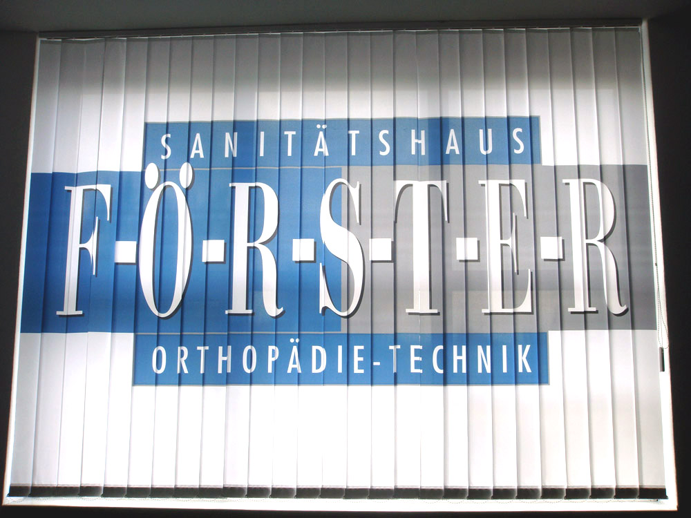 Die einfache Abwicklung und kostengünstigen Preise ermöglichen es auch kleineren Unternehmen, mit einem Foto-Lamellenvorhang mit Logo das Fenster individuell zu gestalten.