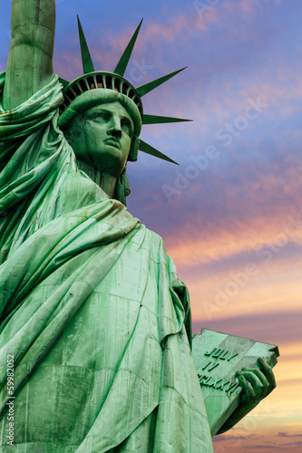 Statue of Liberty under colorful sky