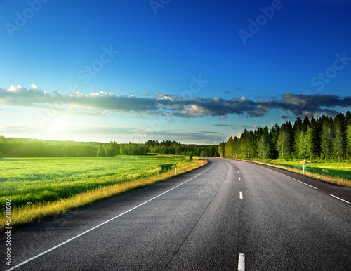 perfect sunset over asphalt road