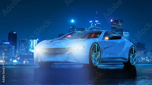 Futuristisches Elektromobil bei Nacht 3D