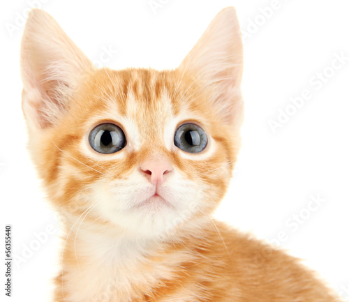 Cute little red kitten isolated on white