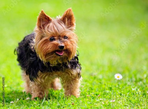 Cute Yorkshire Terrier Dog Playing in the Yard