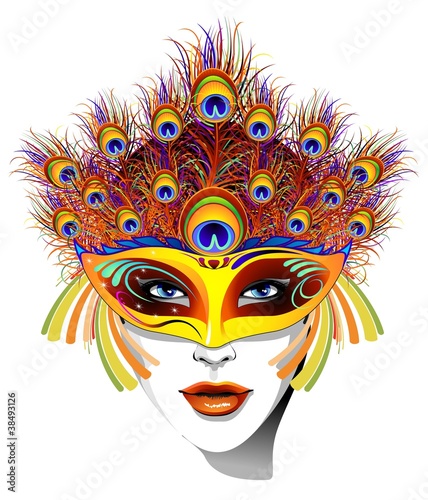 Maschera Piume Pavone Donna-Peacock Feathers Mask Face-Vector