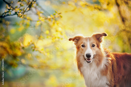 Border collie portrait on sunshine background