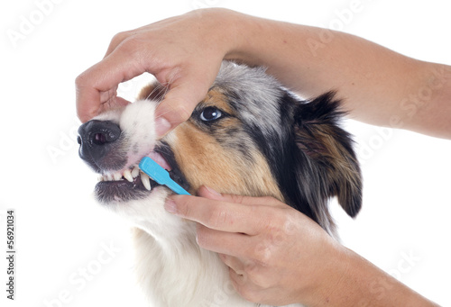 australian shepherd and toothbrush