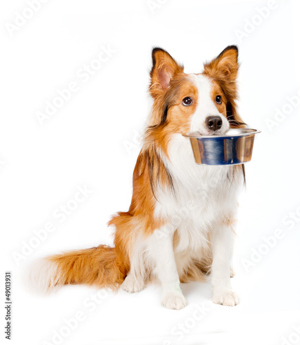 dog with empty bowl