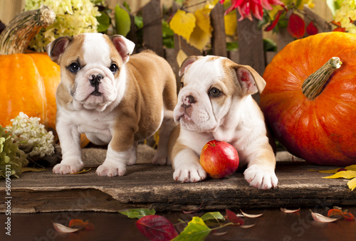 English bulldog and a pumpkin