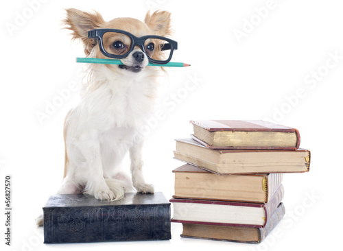 chihuahua and books