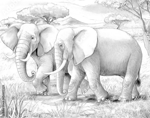 Elephants family on savanna. Safari in Amboseli, Kenya, Africa