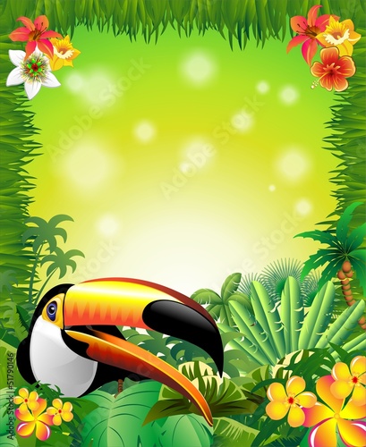 Toucan on Green Jungle Background-Tucano in Sfondo Giungla