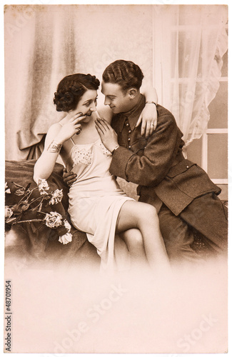 Smoking Retro Woman. Vintage Styled Black and White Photo