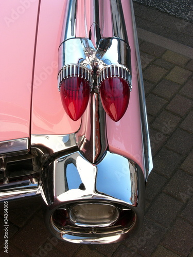 Heckpartie eines pinkfarbenen Fünfziger Jahre Straßenkreuzers