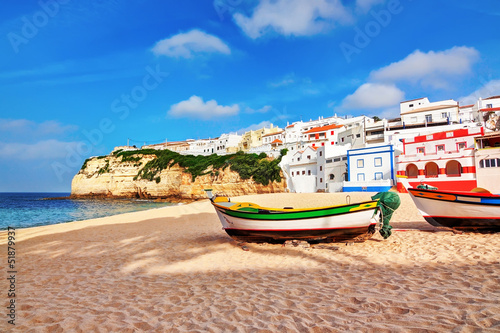 Portuguese beach villa in Carvoeiro classic fishing boats. Summe