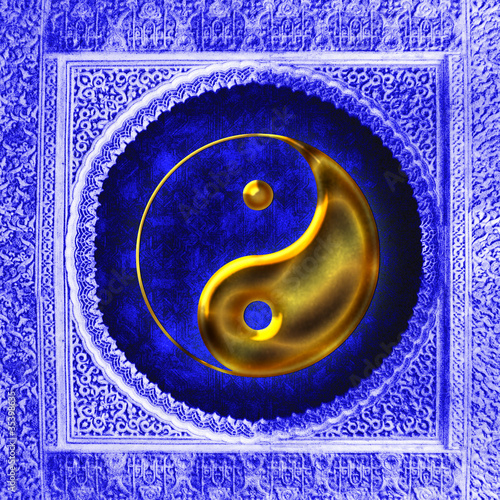 Mandala Om-Symbol Aum Zeichen, rot orange gelb Blume
