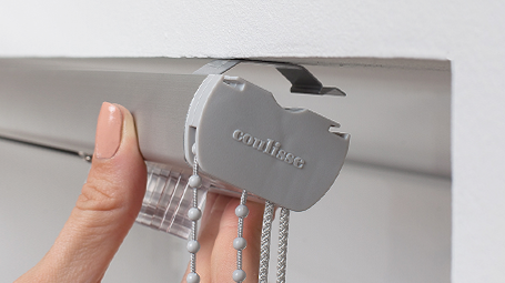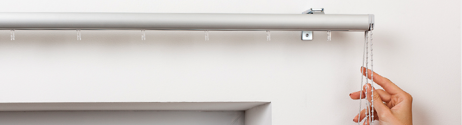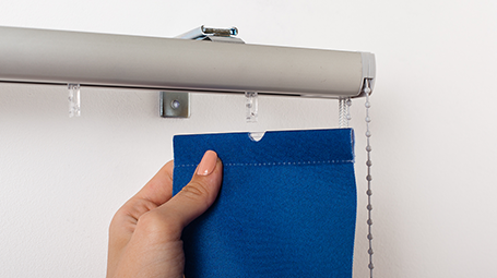 Positionieren Sie die Lamellenhaken so, als sei der Vorhang offen und Sie könnten hinausschauen.