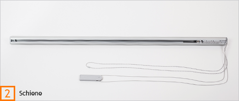 Drücken Sie die Lamellen in den Lamellenhaken, bis diese hörbar einrasten. Haben Sie eine Schiene Premium bestellt (mit Metallhaken), so werden die Lamellen nur eingehängt, wie ein Kleiderbügel auf eine Haken.