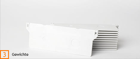 In jede Lamelle müssen Sie nun in die untere Tasche ein Gewicht einführen.