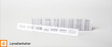 Führen Sie die mitgelieferten Lamellenhalter in die oberen Taschen der Lamellen ein.
