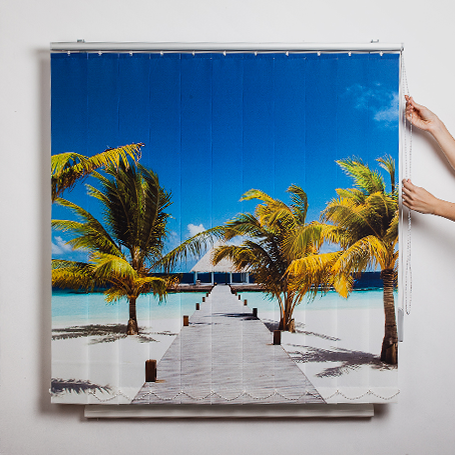Nun ist Ihr Foto-Lamellenvorhang fertig montiert und er sollte sich einfach öffnen und schließen lassen.