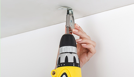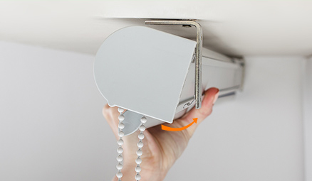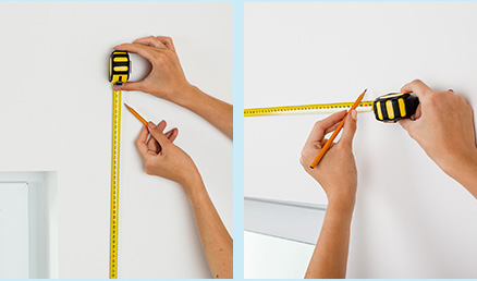 Messen Sie gemäß Ihrer bestellten Breite die Bohrlöcher aus, die Sie für die Seitenträger benötigen. Bohren Sie dan die Löcher. Befestigen Sie die Deckenwinkel mit Dübel und Schrauben, die für Ihre Wände geeignet sind. Bitte beachten Sie, dass Dübel und Schrauben nicht zum Lieferumfang gehören. Lassen Sie das Kassettenrollo hörbar in die Clipse an den Winkeln einrasten. Wenn Ihr Kassettenrollo an den Montageclipsen montiert wurde,...![]() ...sollten sie es problemlos bedienen können und es sollte sich leicht öffnen und schließen lassen. |
